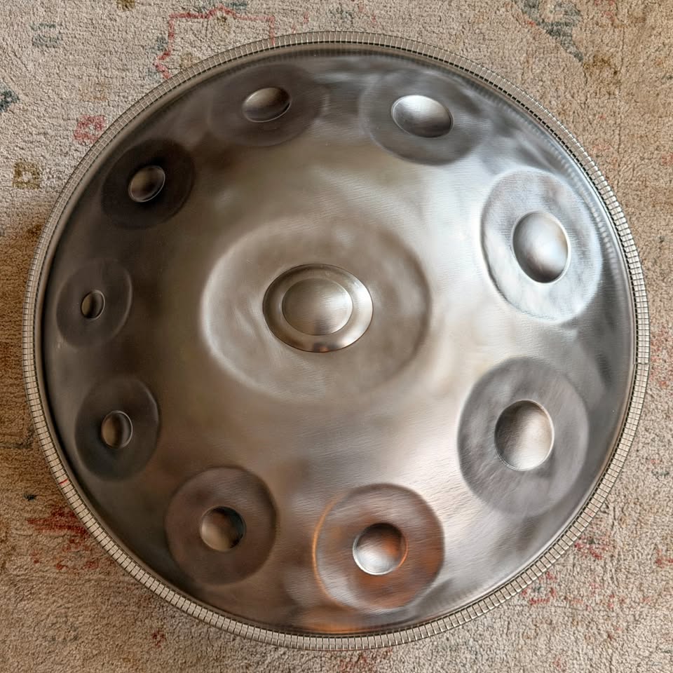 - Stainless Steel Ring: The outer ring of the handpan is made from high-quality stainless steel. This provides a beautiful aesthetic finish and helps maintain the structural integrity of the instrument.
