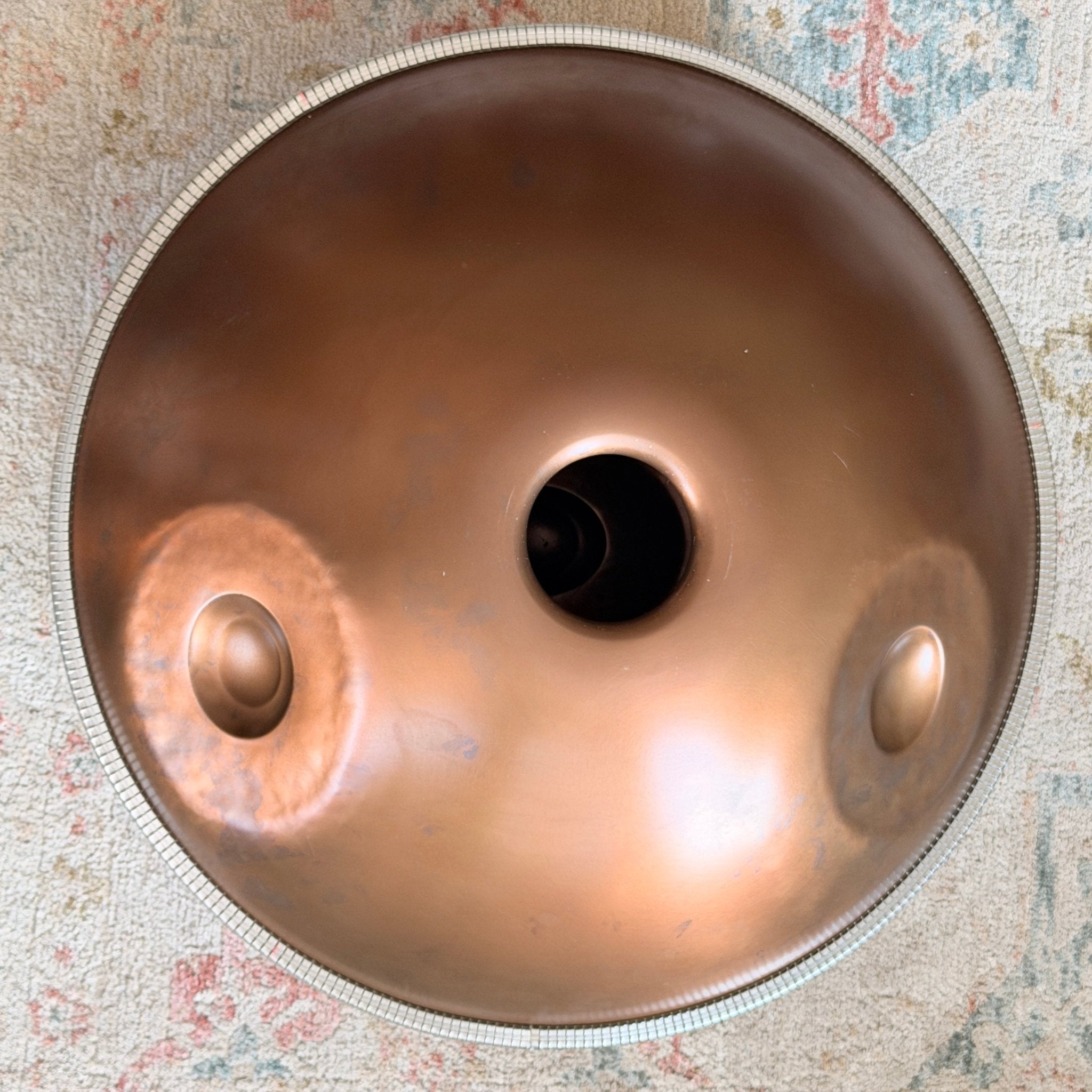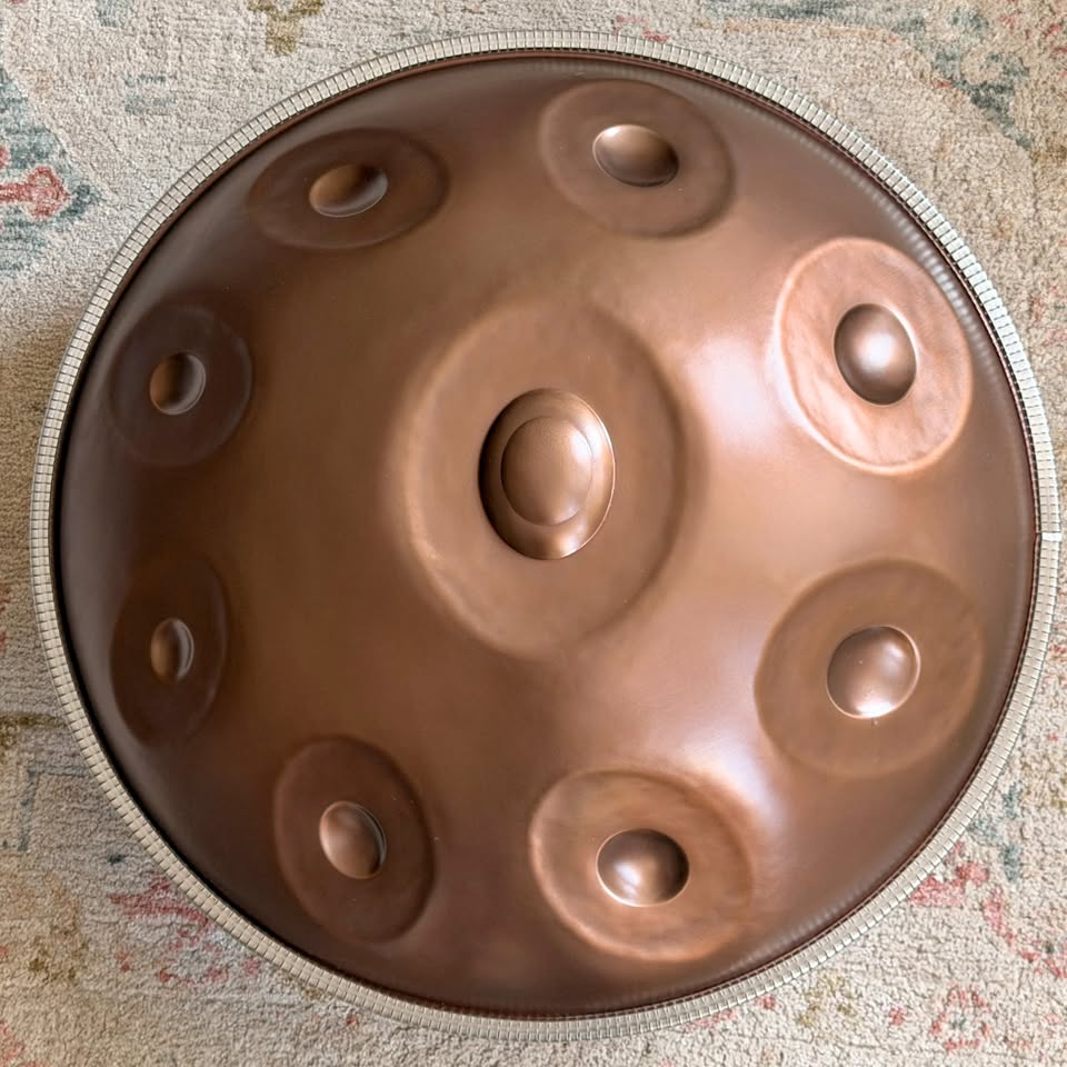 - Stainless Steel Ring: The outer ring of the handpan is made from high-quality stainless steel. This provides a beautiful aesthetic finish and helps maintain the structural integrity of the instrument.
